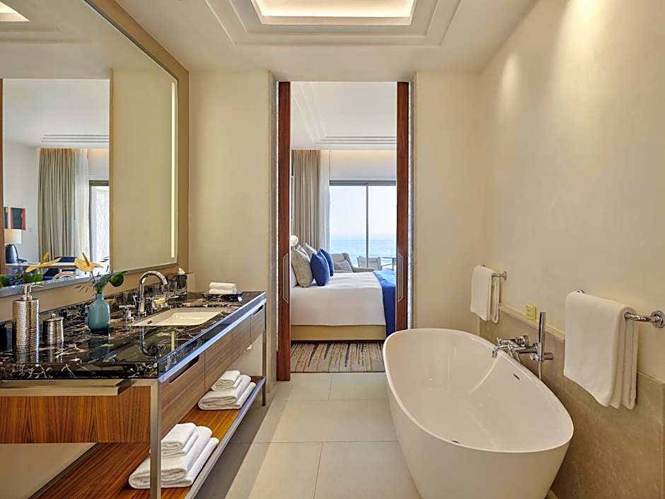 Nestled along the stunning Moroccan coast in Tamraght Ouzdar, the Fairmont Taghazout Bay is a luxurious 4-star haven just 0.8マイル from the lively city center. This beachfront paradise offers an unbeatable combination of relaxation and adventure, with its private beach area and water sports facilities on site, making every day feel like a getaway. Whether you're soaking up the sun on the sun deck, enjoying the vibrant live music performances, or exploring the nearby golf course, there’s something to delight every traveler.